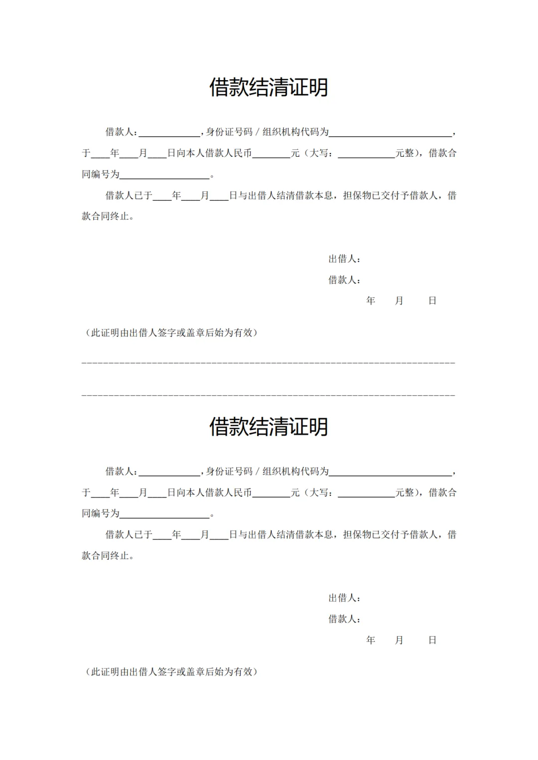 个人借款结清证明模板,WORD文档电子版,可免费下载打印