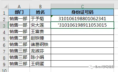 身份证有 18 位数字,当单元格内数字超过 11 位时,Excel 会自动将其转换为科学计数格式,不仅无法完整展示完整每一位数字,而且超过 15 的数字,后面的位数会全部显示为 0。