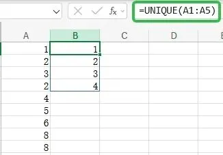 | 自动去重 | =UNIQUE(A1:A5) | 返回一个没有重复值的列表 |