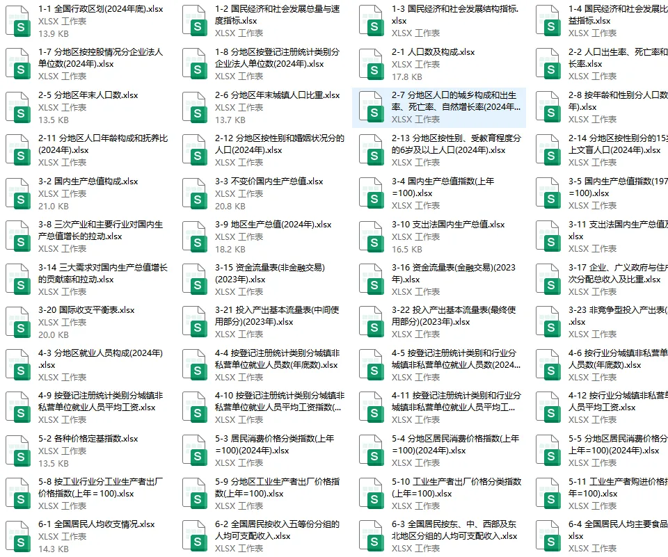中国统计年鉴2025年最新版更新信息,国家统计局编印的权威性年度资料汇编,全面反映中国经济和社会发展情况。覆盖全国及各省、自治区、直辖市数据,不含港澳台(特殊标注除外)。2025年11月更新版已发布,主要板块:综合、人口、就业、财政、能源、工业、教育、卫生等28个领域。区域划分东部(10省市)、中部(6省)、西部(12省市)、东北(3省),数据整理为EXCEL版本