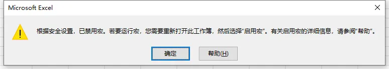 不知道你有没有遇见过以下这些弹窗,无论你的表格文件中有多厉害的宏代码,在此刻它们通通失效!到底该如何设置才能不出现这些弹窗呢?到底该如何设置才能启用宏并运行代码呢?图4 未启用宏时通过[开发工具]-[宏]-[执行]运行代码导致警告一般情况下,你的表格会出于安全考虑默认禁用宏,所以会有上述的弹窗出现来防止恶意代码的威胁。你可以根据以下指引查看默认宏设置:在表格左上角点击[文件]-在界面左下角点击[选项]-在弹窗左侧点击[信任中心]-在弹窗右侧点击[信任中心设置]-在弹窗左侧点击[宏设置]。如果发现宏设置中默认勾选了图6的选项,那么你打开任何一个含有宏代码的表格文件时都会出现上述图1的黄色安全警告。这是由于没有启用宏导致的。在出现图1黄色安全警告之后,你会有以下三种操作可以选择:1. 点击黄色安全警告右侧的叉号关闭它以保持宏禁用状态;2. 点击黄色安全警告中的按钮“启用内容”以进入启用宏状态,随后出现图2弹窗;3. 无视黄色安全警告直接尝试运行宏,此时你会收到图3至5其中的一个警告;要想启用宏从而关闭这些弹窗,最简单的办法是:在上图6的宏设置界面勾选“启用VBA宏(不推荐:可能运行危险代码)”,然后重启表格文件。这样操作之后,你不会看到上述图片1至5的任何警告,而且也可以使用任何表格文件中含有的任何宏代码。要想启用宏从而关闭这些弹窗,最便捷的办法是:点击上图1黄色安全警告中的按钮“启用内容”,代表宏已被启用,继续点击图2中的按钮“是”,然后直接运行代码即可。这样操作之后,只有当前文件的宏被启用了,下次再打开该文件时不会提示图1黄色安全警告且宏可用,但其他文件仍会提示安全警告。
