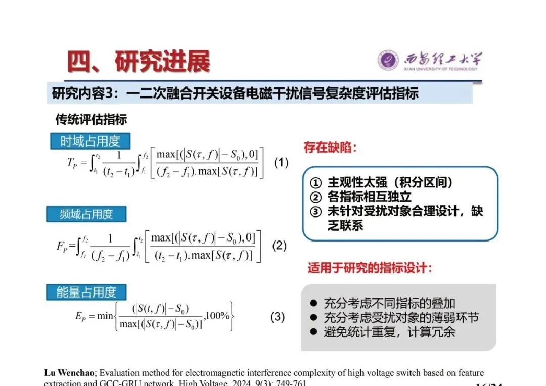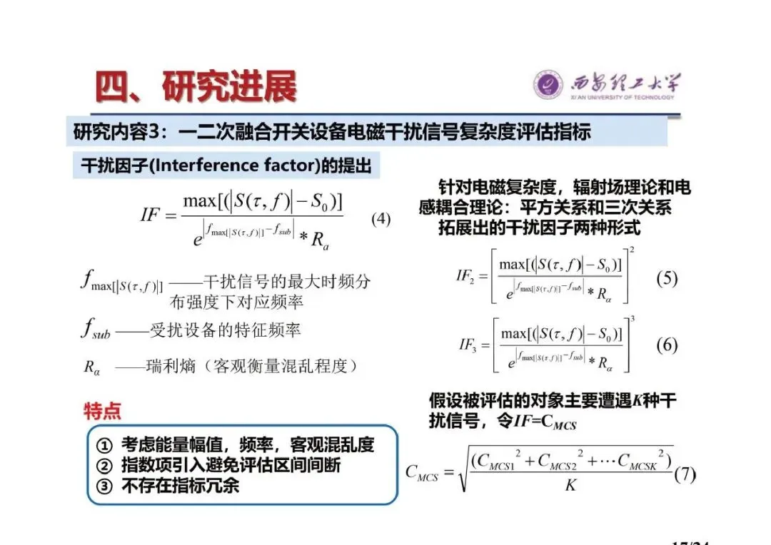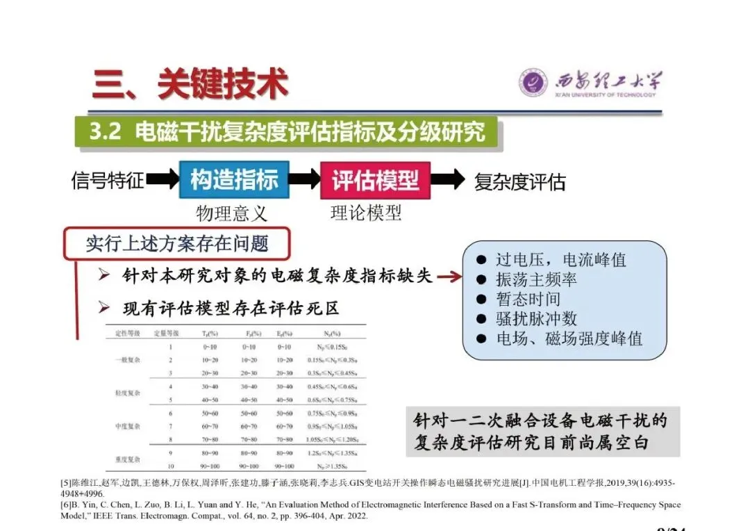 - 结论:提出了模拟一二次融合设备的等效试验+测量方法,可还原真实工况下的电压、电流、电磁场特征,具有电磁干扰等效性;创造了一种复杂度评价指标,涵盖设备失效主要原因,采用机器学习方法设计构造,深度挖掘复杂度和干扰信号间强关联因素,形成评价方法;鉴于缺乏具体失效案例数据,利用统计学推论方法,建立了无失效数据的一二次融合设备失效评估或失效概率预测模型。