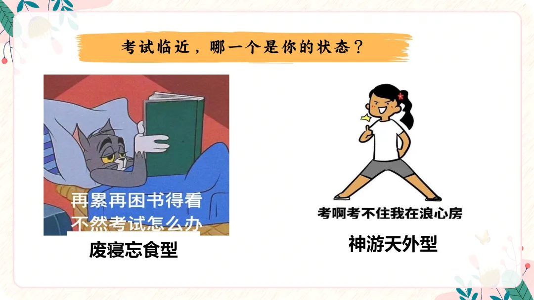 很高兴在这与您相遇,如果您是一位班主任老师,每天除了应对繁重的教学工作,还要加班整理班级、教务、教研、课件PPT资料,请关注下方的“春雨教务资料”,让我们风雨同路、一起成长~今天分享的是中小学期末复习期末动员主题班会的ppt课件及配套的发言稿,主题是《全力以复,迎战期末》。P8 心态放松积极备考 - 接纳情绪