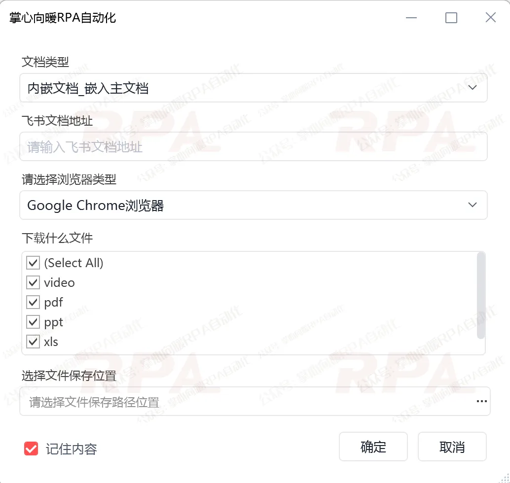 这是一款基于影刀RPA开发的"自动化下载飞书文档中PDF、PPT、视频、普通电子表格、Word文件的RPA机器人(网页自动化)"。