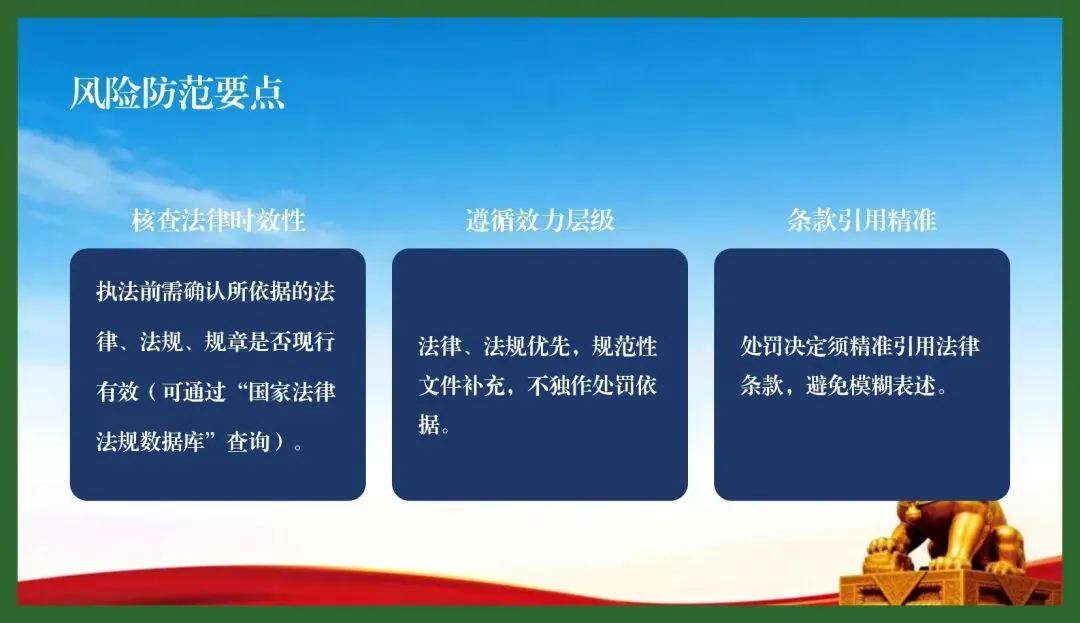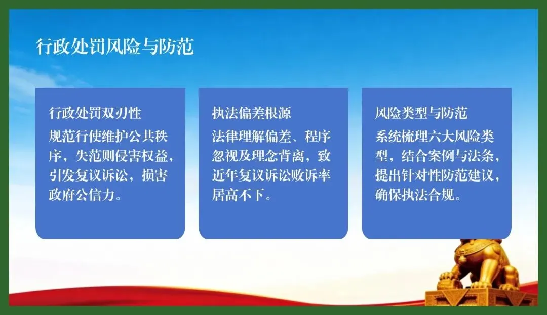 今天,我们将通过典型案例与法律条文的对照分析,系统梳理行政处罚实践中常见的六大风险类型,并提出针对性的防范建议。希望通过本次交流,能帮助大家在执法一线少走弯路、少碰“红线”,让每一起行政处罚都经得起法律和历史的检验。