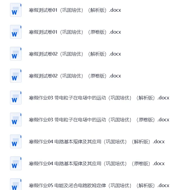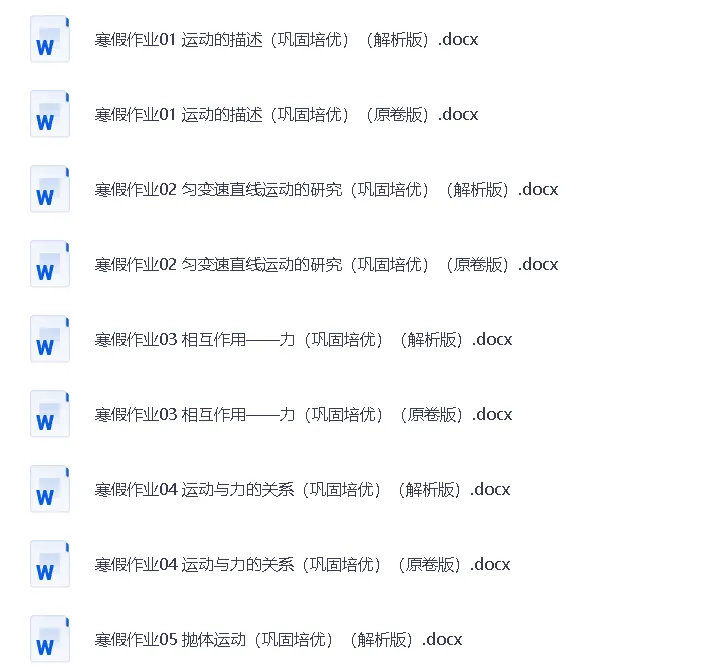 2026年高一高二物理寒假作业(word版)(电子资料)