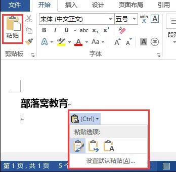 方法一:复制文本,然后在【开始】-【剪切板】组中点击“粘贴”按钮(可按Ctrl+,文字右侧将显示“ Ctrl”按钮,点击右侧三角按钮,可看到对应的粘贴选项。