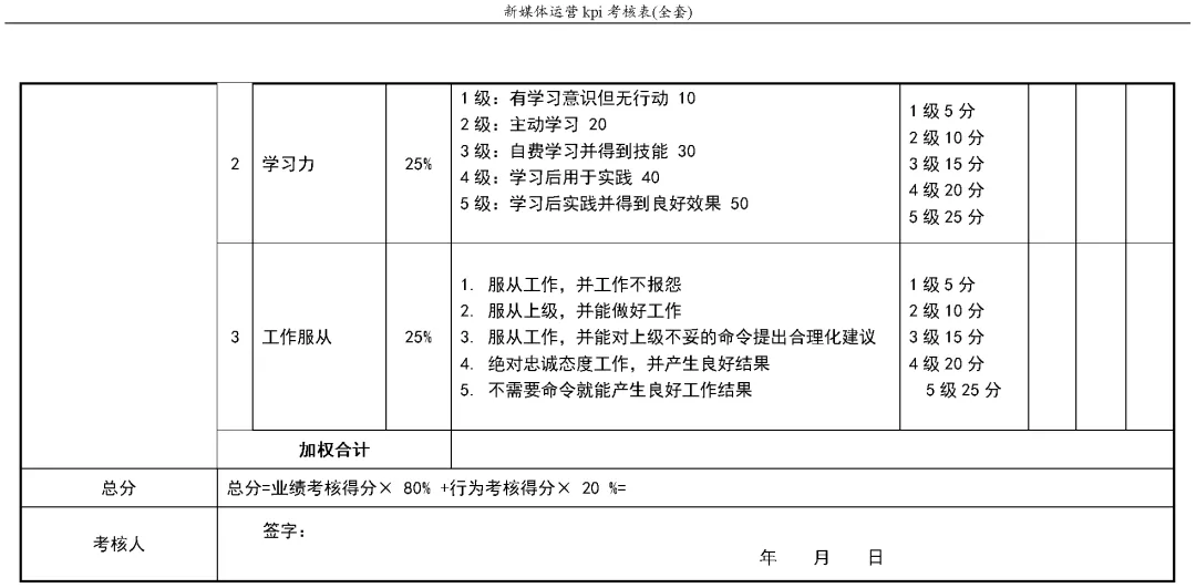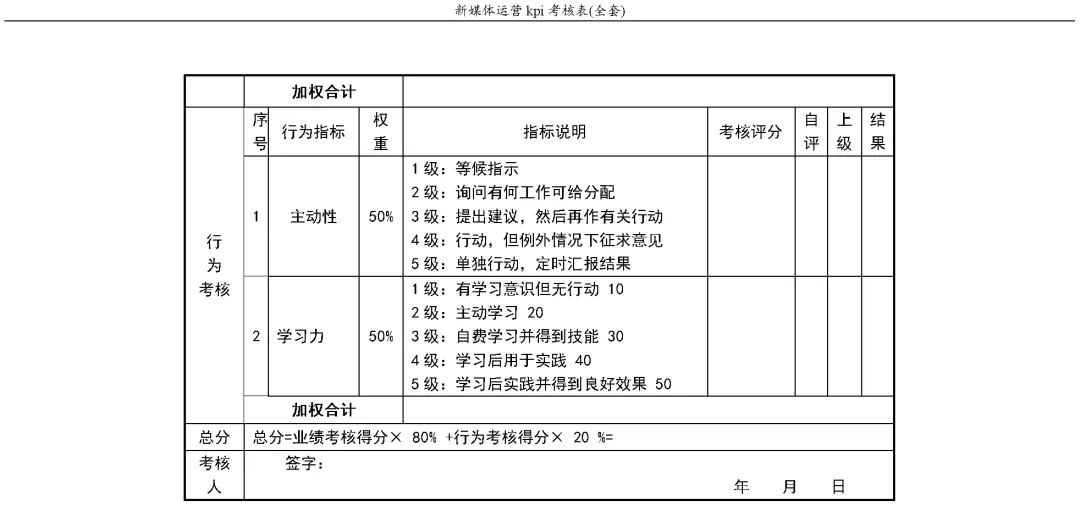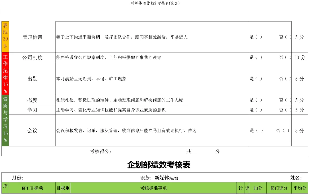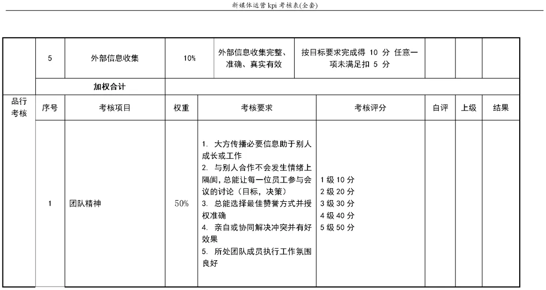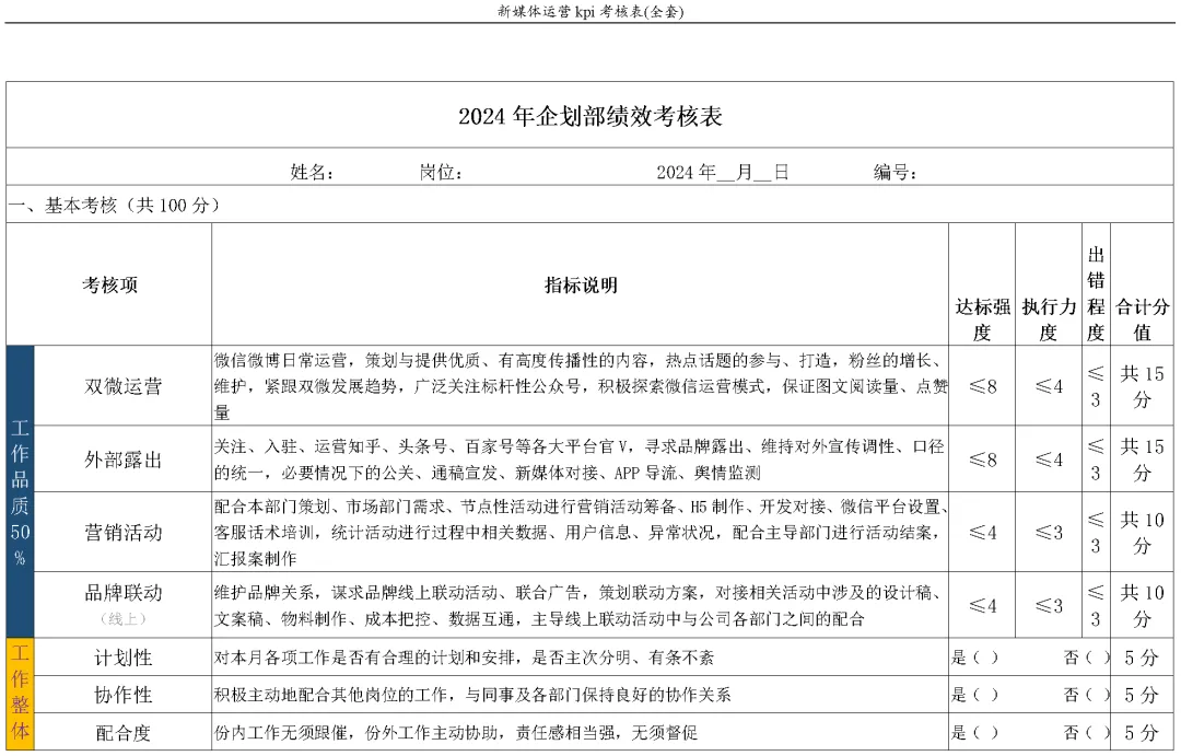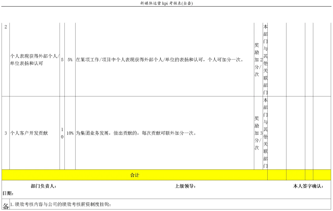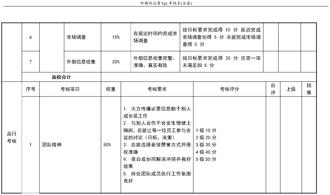 本资料为《新媒体运营KPI考核表(Word文档)》,欢迎加入会员领取!