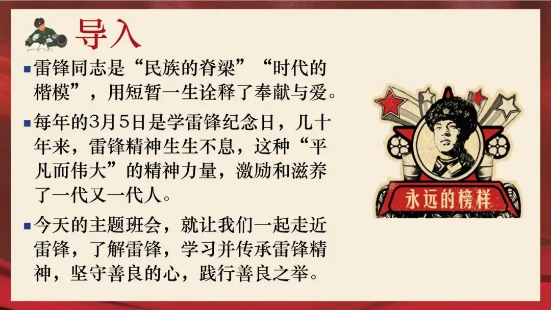 大家好!今日分享《【主题班会】学习雷锋精神》课件PPT电子版可编辑。