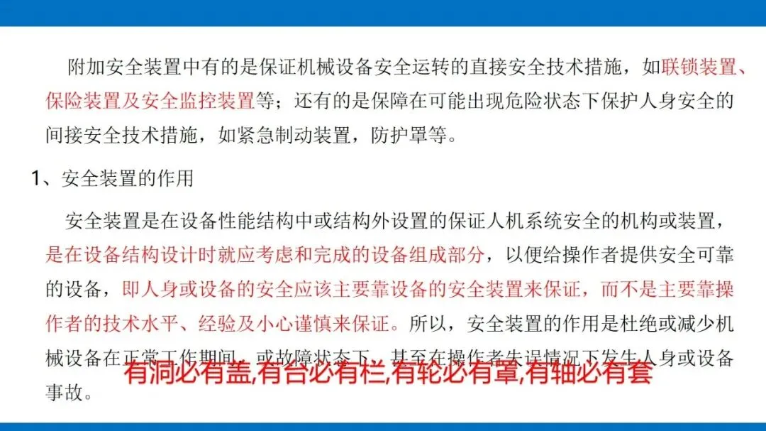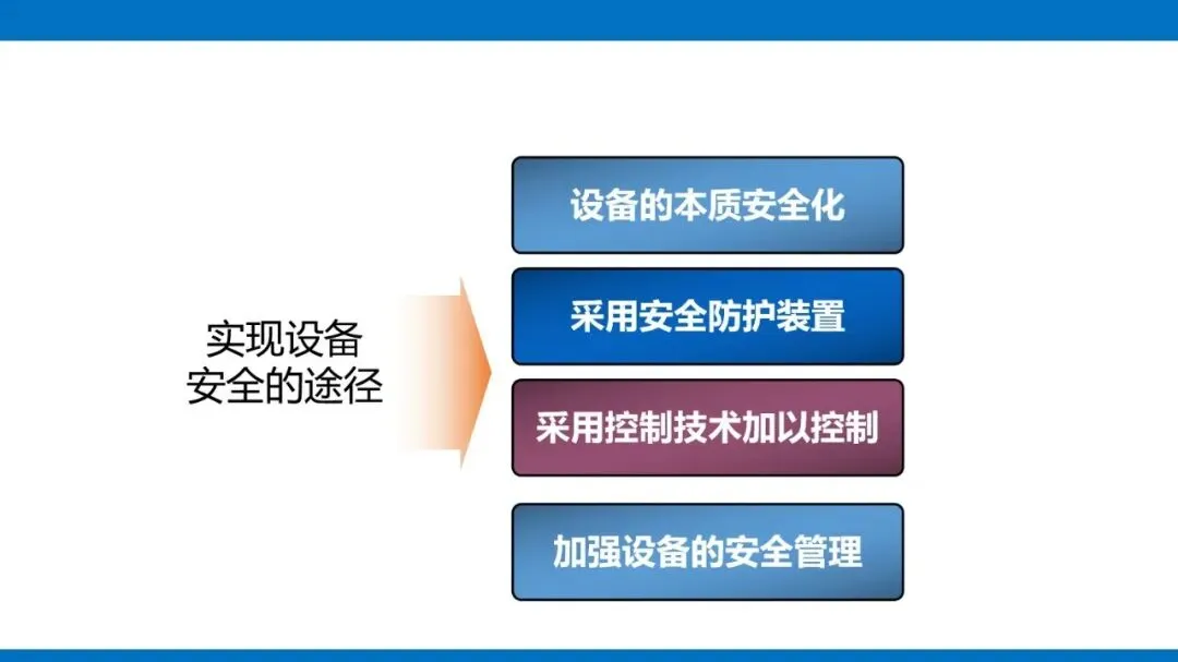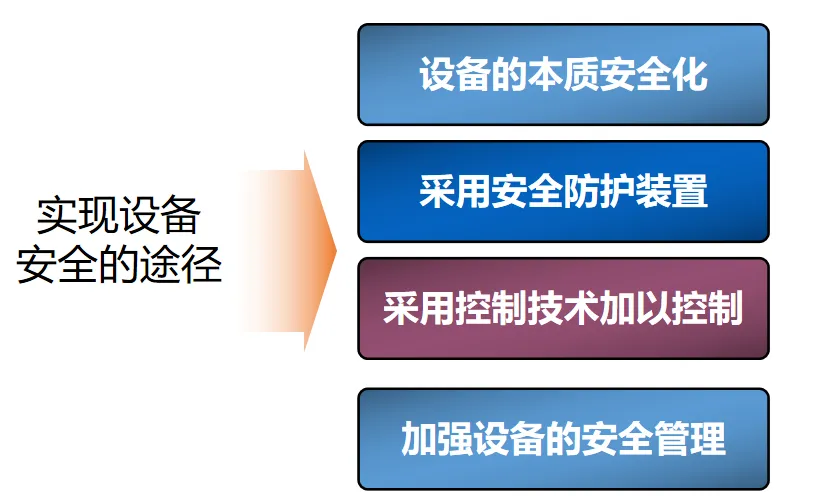 实现设备安全,关键要抓好四个方面:一是追求本质安全,通过优化设备设计,让设备本身具备失误安全和故障安全功能,哪怕操作出错或设备出问题,也能避免事故;二是配齐安全防护装置,像隔离防护罩、联锁装置、超限保险这些设备,从物理上挡住危险,而且装置要安全可靠、结构简单,不带来新风险;三是用科学的控制技术,遵循消除、减弱、隔离等 11 项原则,针对性解决不同风险;四是做好设备全生命周期管理,从设计、安装、使用、维护到报废,每个环节都要按标准来,建立安全档案,规范检测保养。