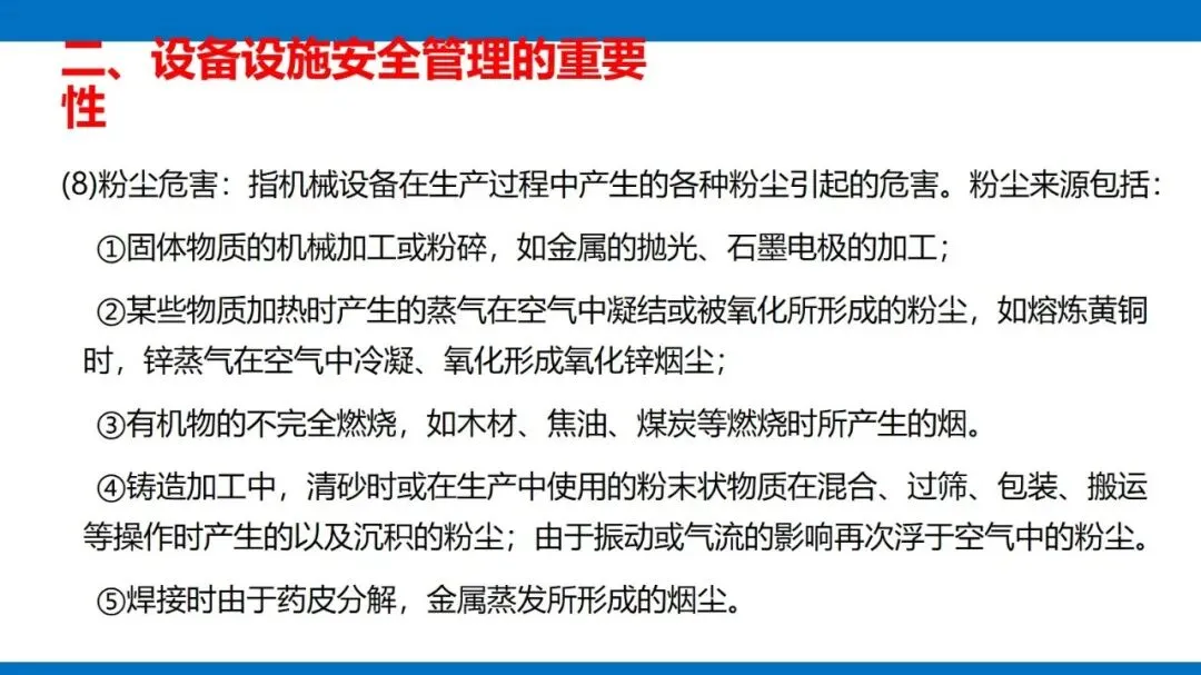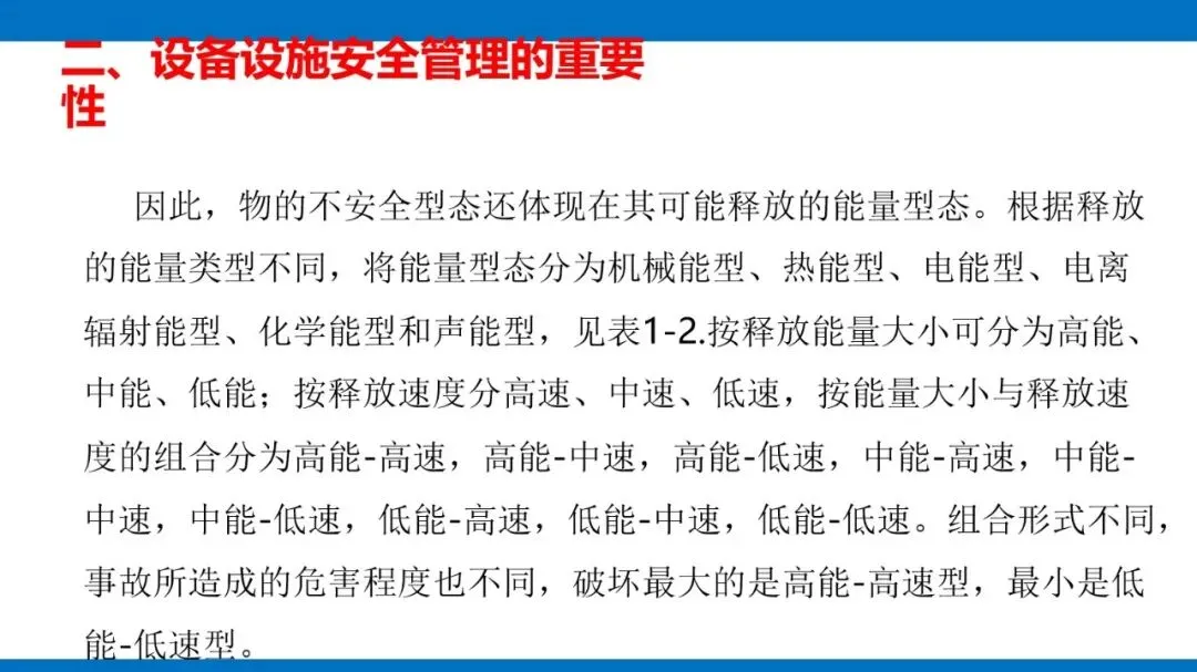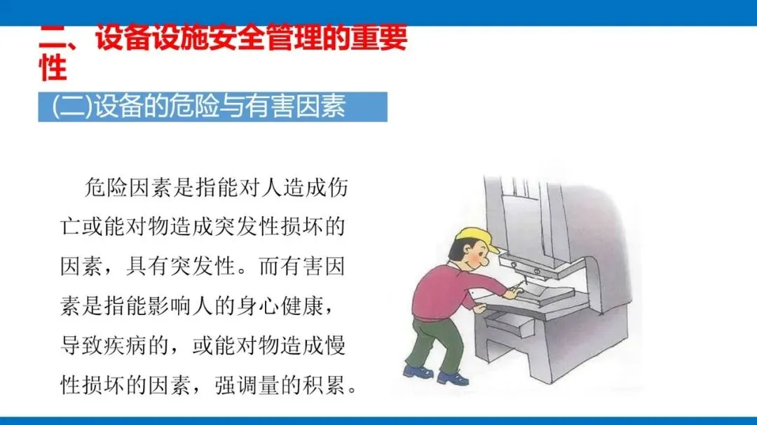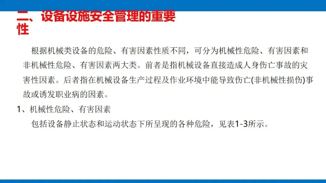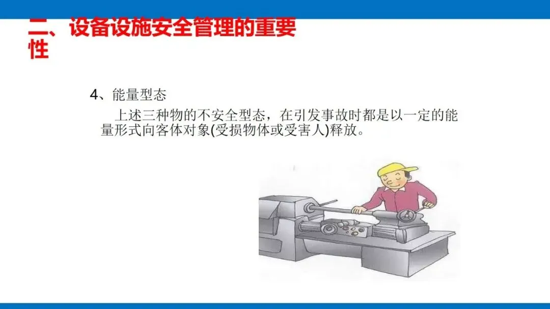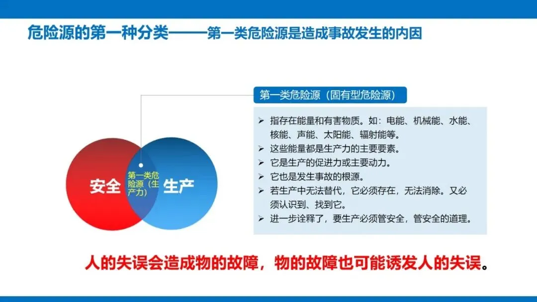 风险源头主要是第一类危险源,也就是设备固有的能量(像电能、机械能等)和有害物质,这些是生产必需的,没法消除,只能通过科学管控实现安全与生产的平衡。同时,设备的不安全状态也不能忽视,包括物理、化学、行为、能量四种形态,还有机械性、非机械性的危险有害因素,比如机械挤压、电击、粉尘危害等,都是管控要重点关注的对象。