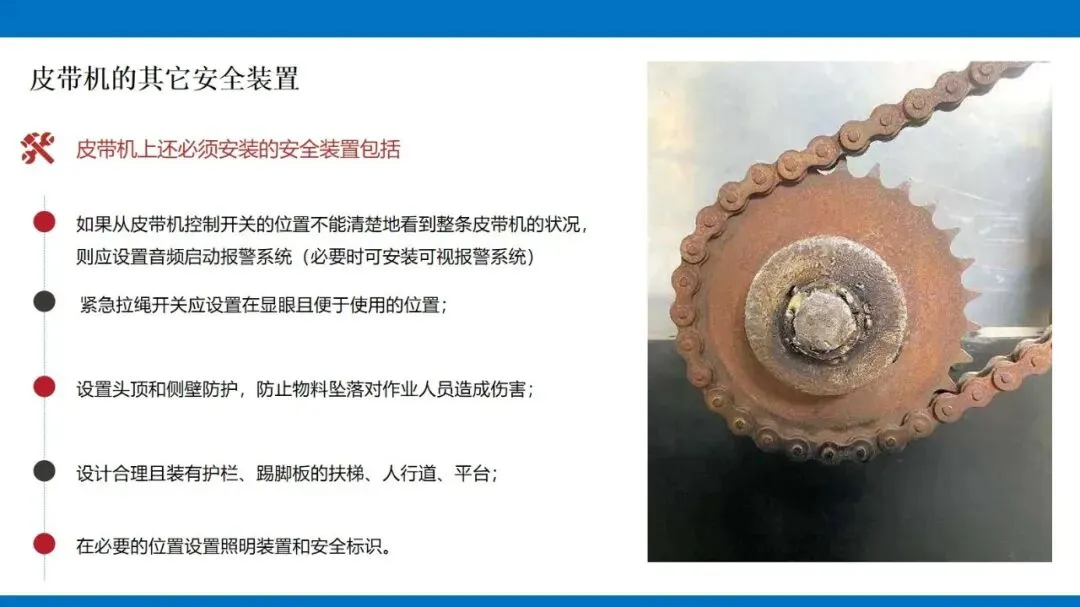 实际管控中,既要给皮带机的头轮、尾轮等关键部位装符合要求的防护罩,设置紧急拉绳开关和报警系统;也要规范操作流程,加强员工培训,让大家懂风险、会操作。只有技术防护、管理规范、人员素养三方面同步发力,才能构建设备安全防控闭环,保障人身和财产安全。