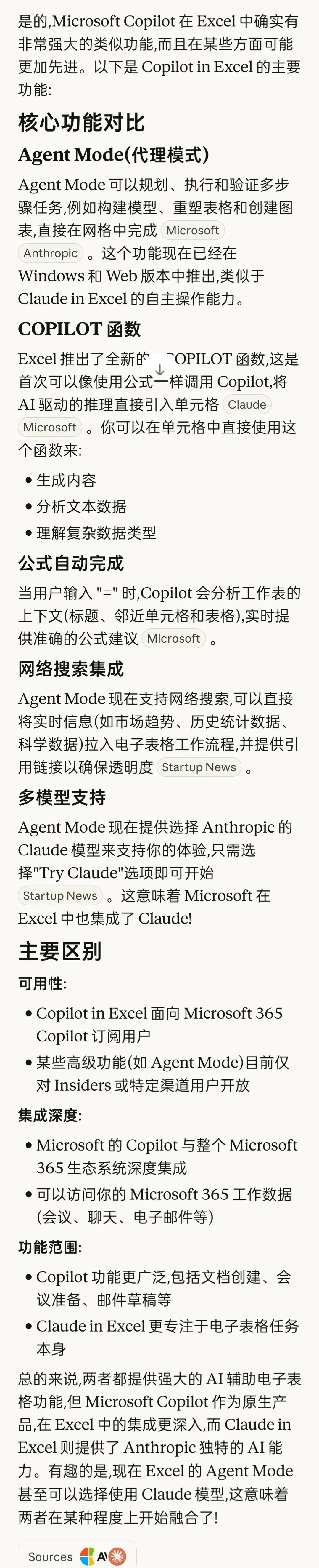 不过,这活不是应该微软自己的Copilot完成吗?之前Excel更新的时候还增加了公式 =copilot()呢。