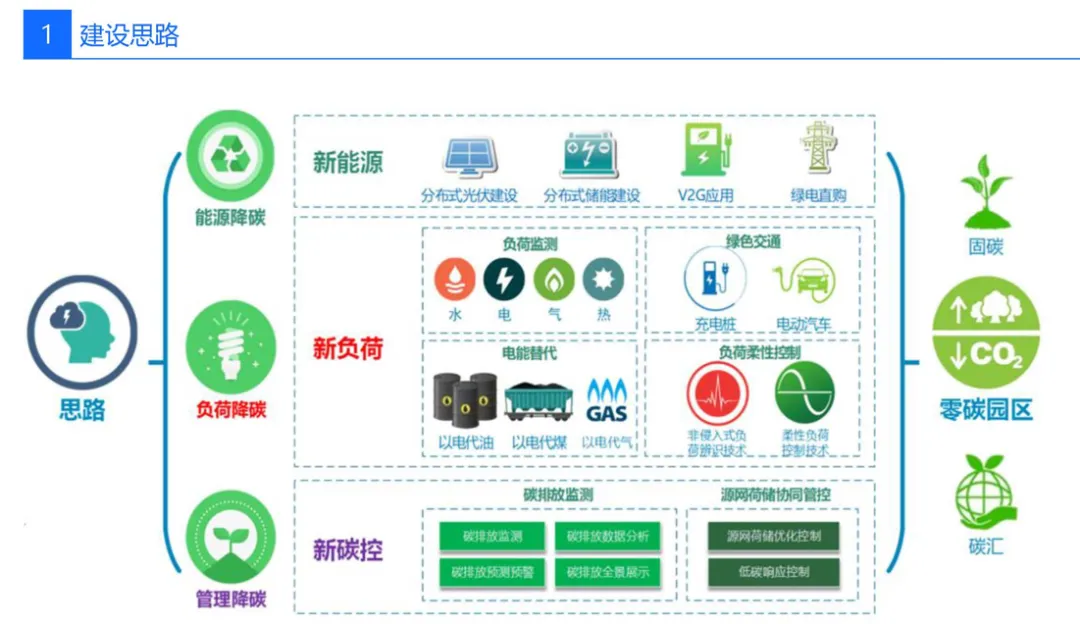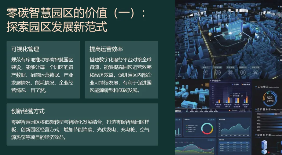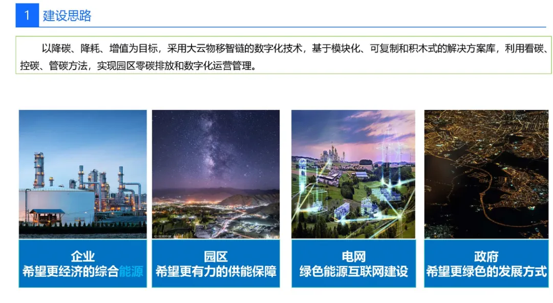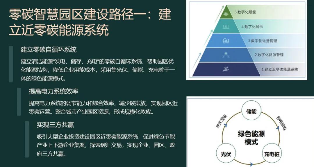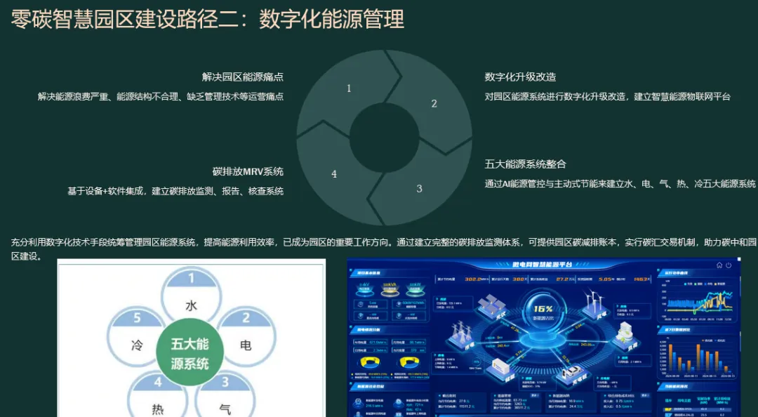 先“盘家底”再“定路线”。园区以碳排放核算为起点,建立覆盖范围一、二、三的实时“碳账户”,形成数字孪生底图;据此设定“碳达峰—碳中和”双时间轴目标,并与地方碳考核、碳交易规则对接,输出“1张蓝图+1套指标+1个平台”的总体框架,确保后续建设可量化、可考核、可融资。
