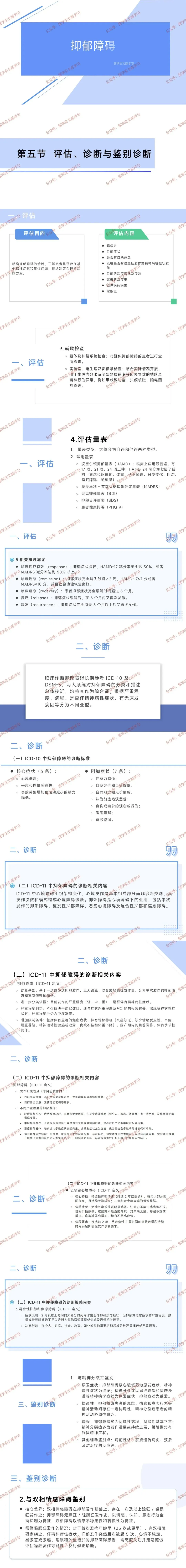 附加症状(7 条):注意力降低、自我评价 / 自信降低、自罪 / 无价值感、前途悲观、自伤 / 自杀观念 / 行为、睡眠障碍、食欲减退。