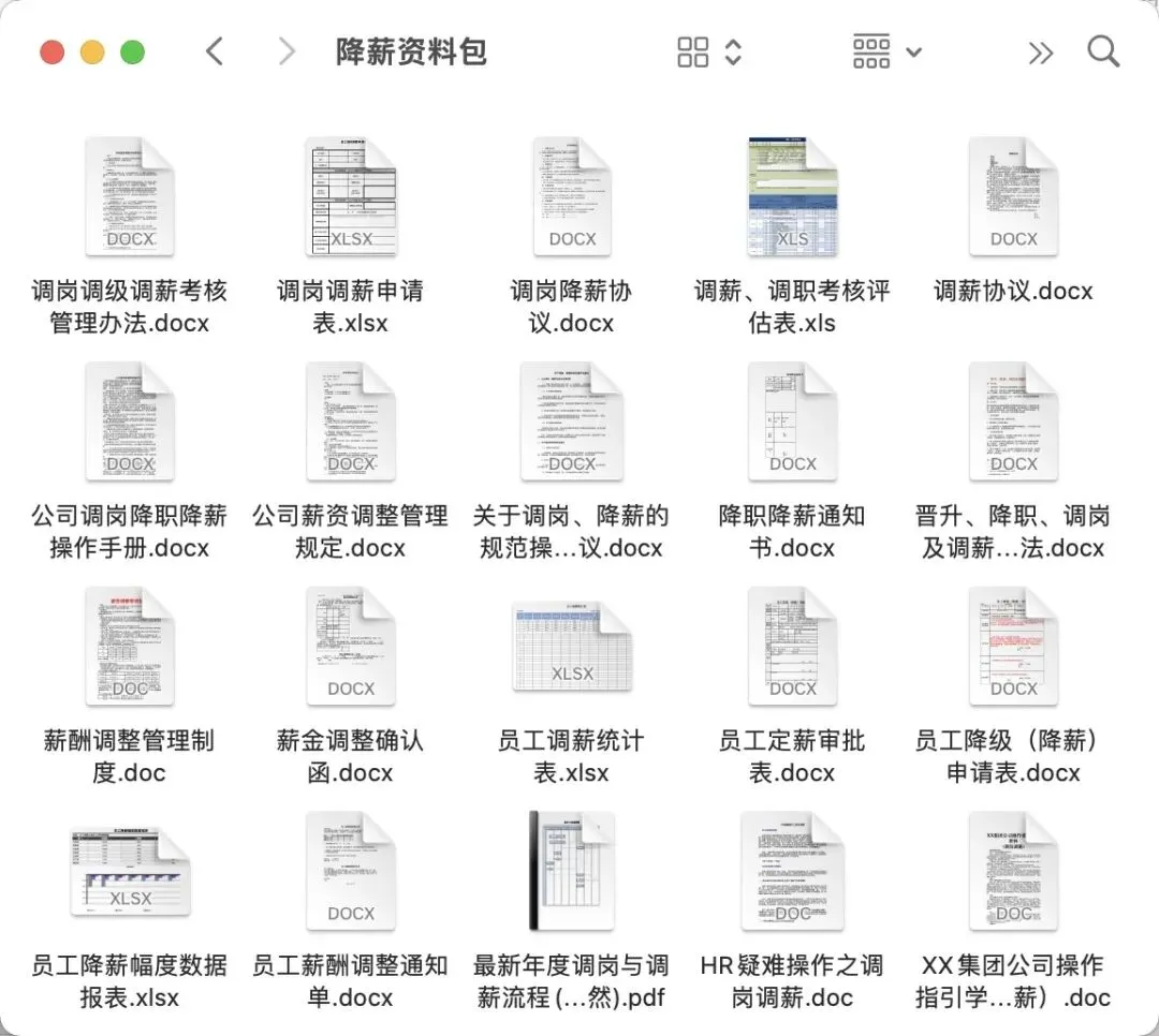 20份降薪必备工具资料,包含降薪操作手册、制度方案、工具表格等内容。
