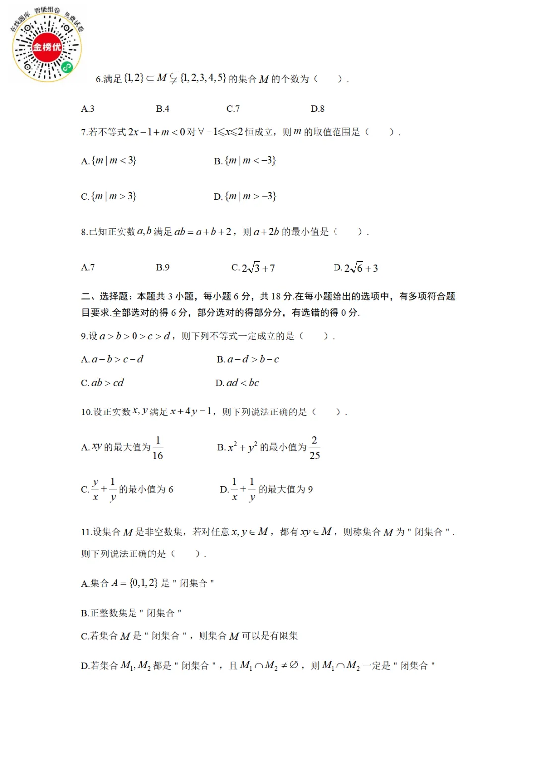 新高考第19题:集合最新好题(word含详细答案)