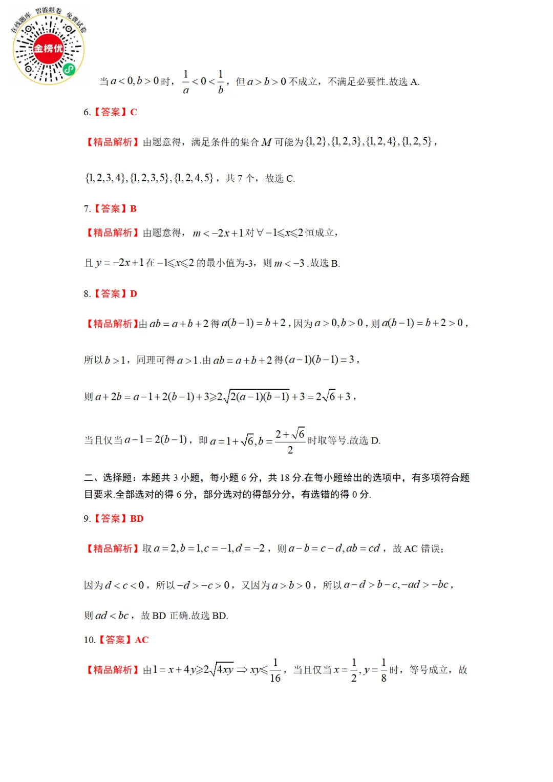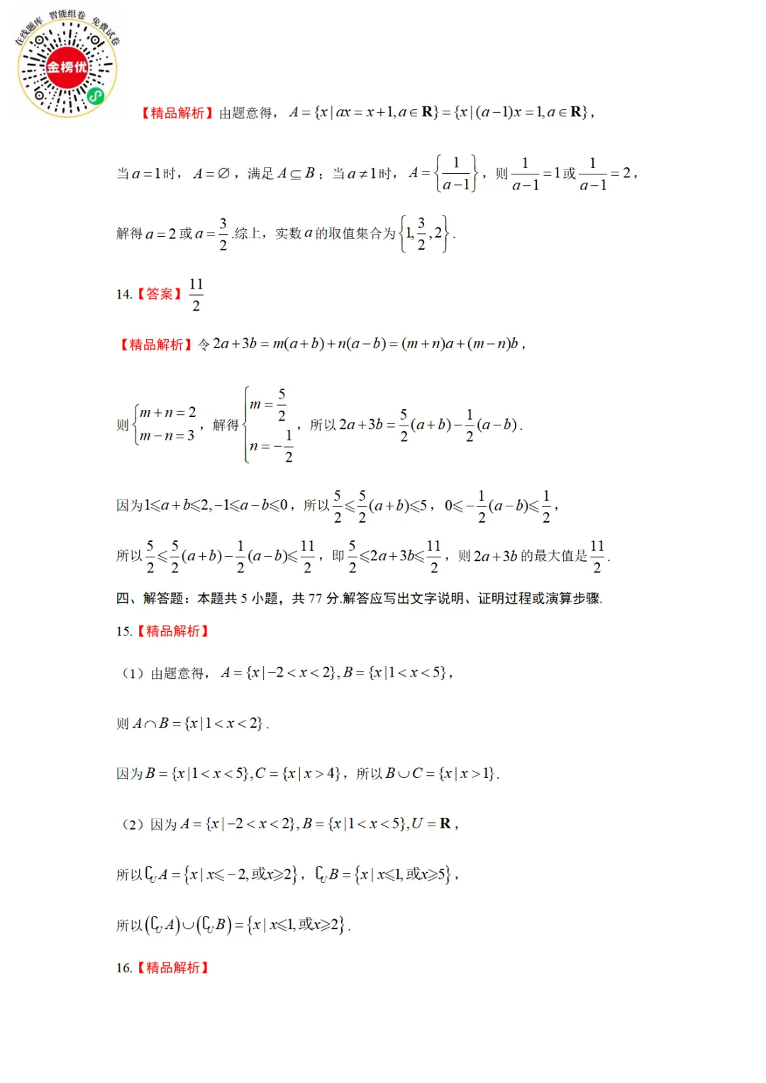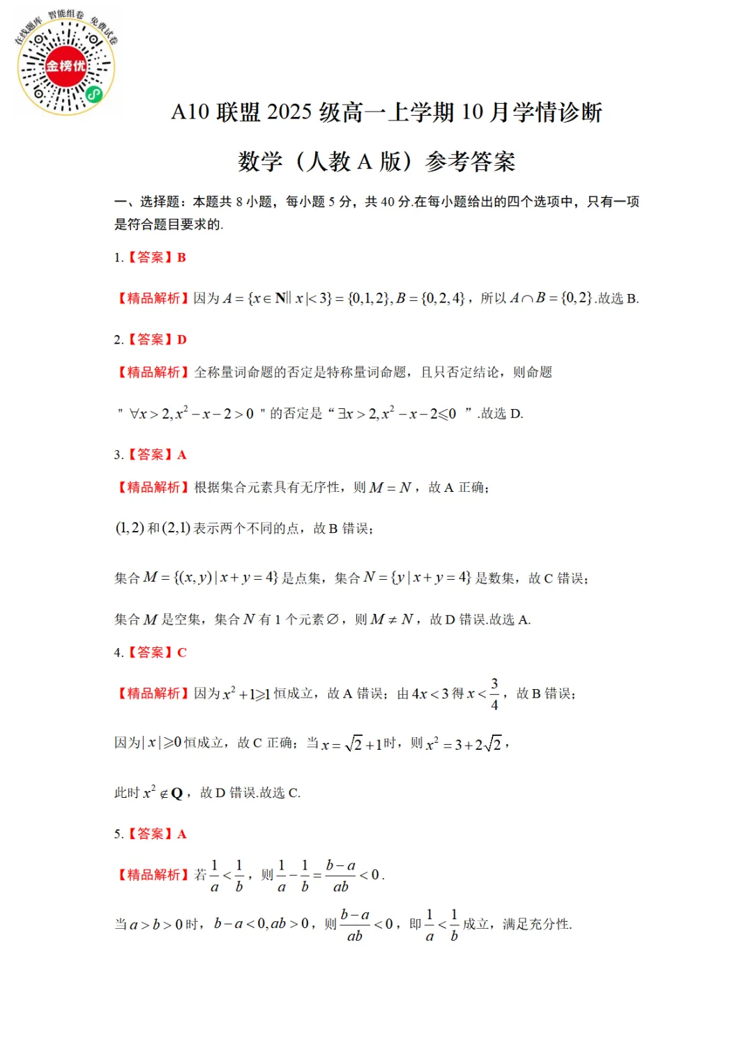 >【精品word版】A10联盟2025级高一上学期10月学情诊断数学试题+答案