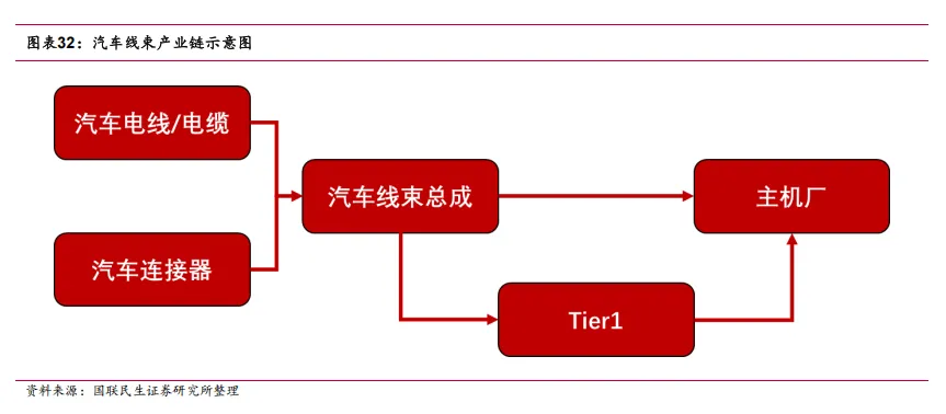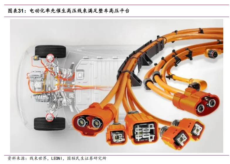 新能源汽车整车电压平台大幅提升,新增大量高压连接器需求;智能化水平更高的新能源车增加摄像头、激光雷达等传感器和座舱的屏幕等终端,新增高速/高频线束需求,智能电动加速带动单车线束量价齐升。从占比来看,连接器和电缆物料成本占比达到2/3,是最重要的两个零部件。