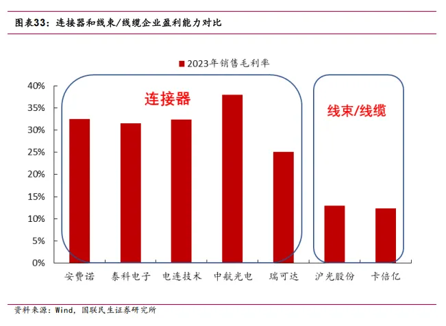 由于连接器具备更强的定制化属性,需要企业具备模具设计、注塑、冲压、压接等研发或制造能力,同时还需要企业具备信号屏蔽、信号完整性设计能力,因此具备连接器自研能力的企业一般来讲具有更高的盈利能力。