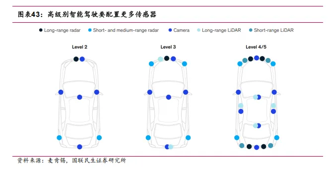 高速连接器:智驾与智舱共振,高速连接器量价齐升。我们认为,高阶智能驾驶功能开始落地,叠加座舱配置持续升级,有望推动高速连接器用量提升,带动汽车高速连接器规模实现快速增长,具体来看:
