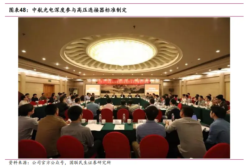 前瞻布局,引领高压连接器国产配套。公司前瞻判断新能源汽车爆发趋势,于2008年进入新能源汽车领域,2010年加入我国电动汽车标准化委员会,参与我国电动汽车高压连接器部分的标准制定。2017年4月18日,公司承办GB/T《电动汽车用高压连接系统技术要求》标准讨论会,包含中航光电在内的国内主要整车生产厂家,高压连接器、线束生产厂家及线缆厂等40余家单位70余位代表参加研讨,公司深入推动了国内高压连接器及线束赛道的发展。