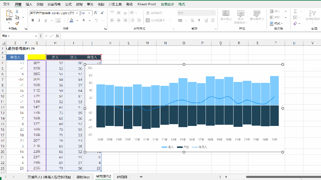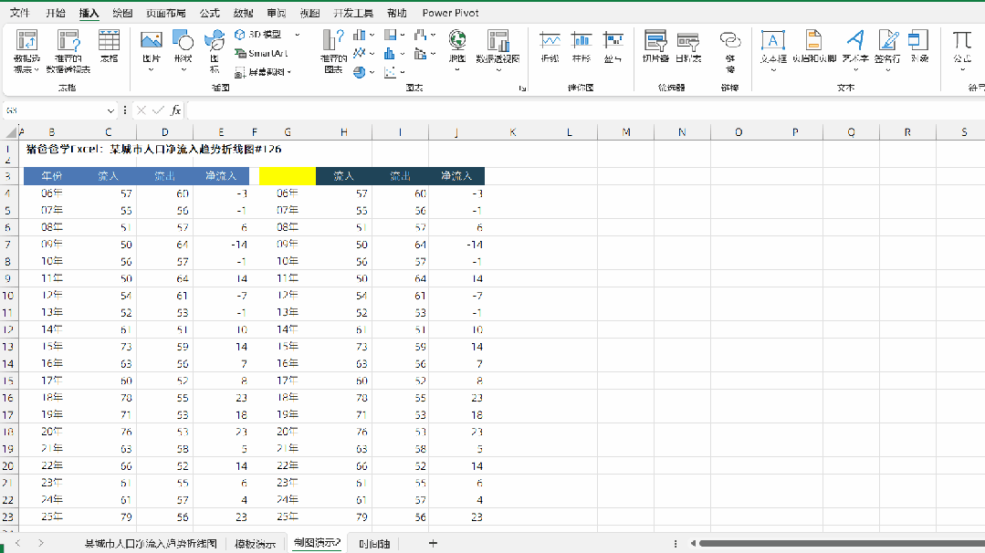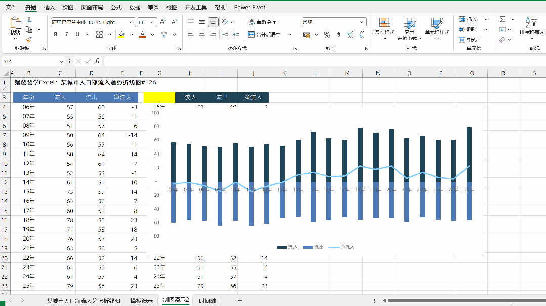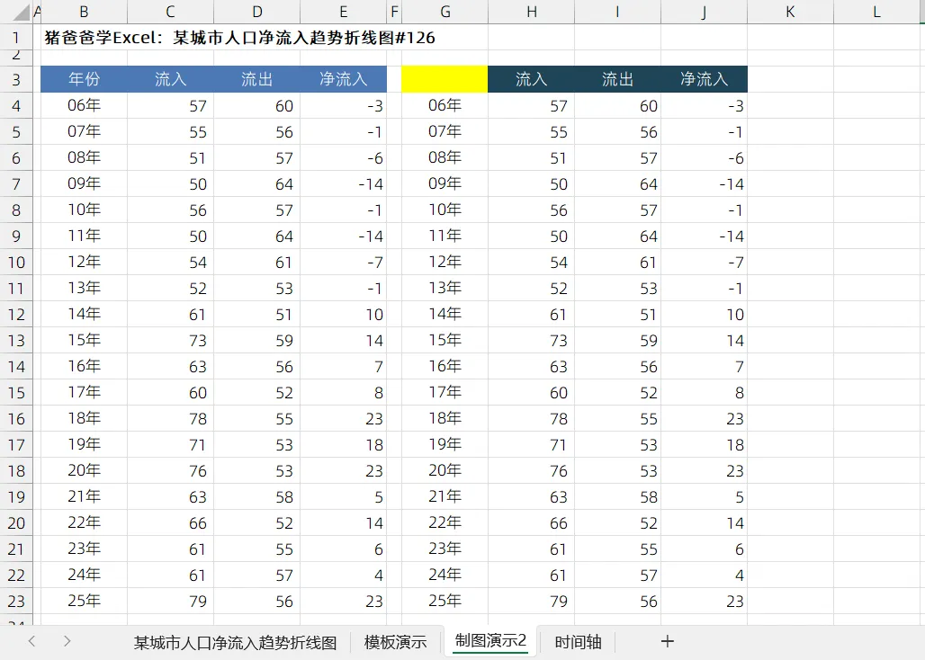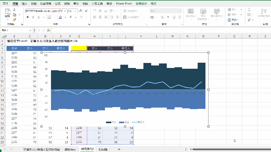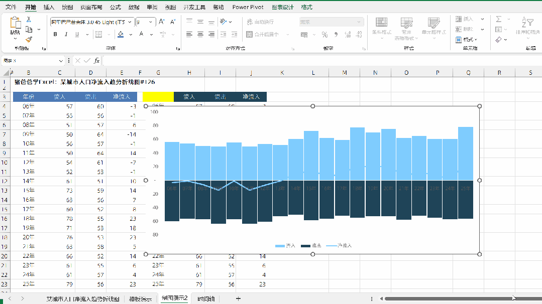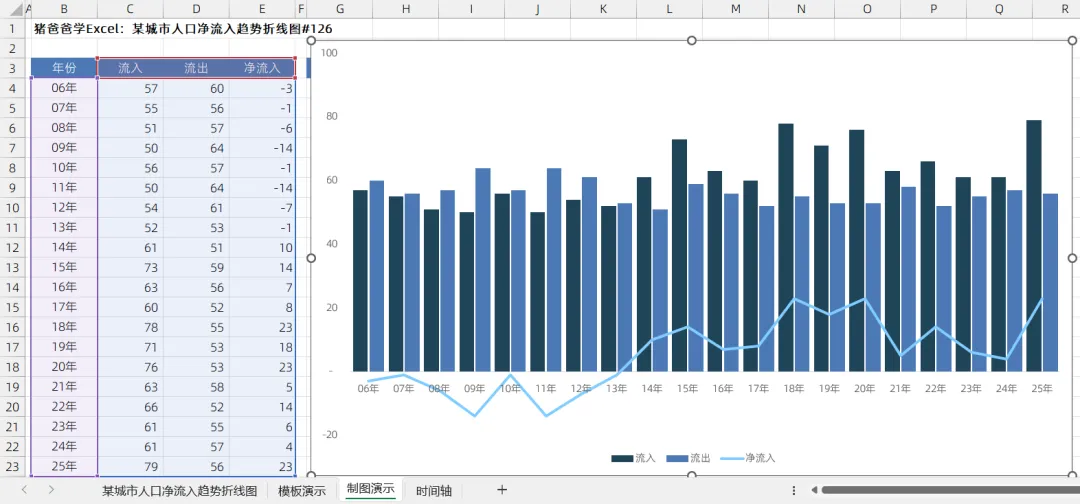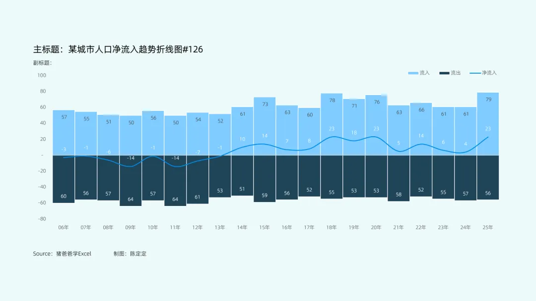 某城市人口净流入趋势折线图|猪爸爸学Excel图表