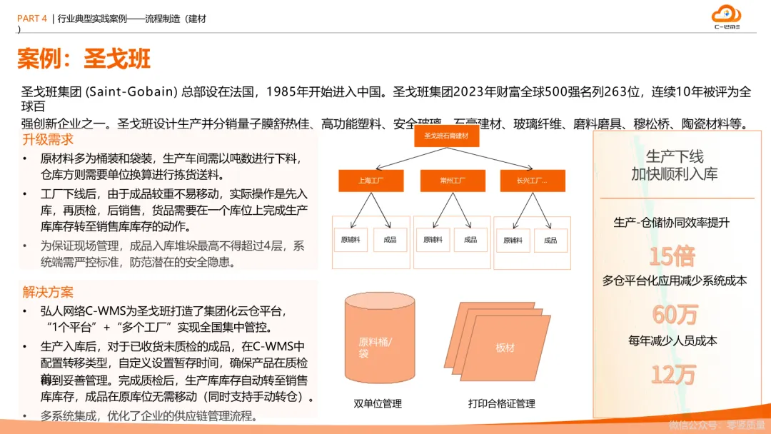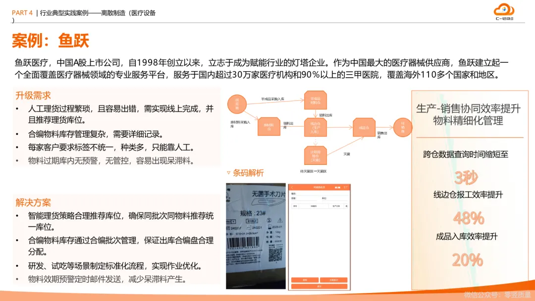 案例涵盖离散制造和流程制造两大领域,离散制造案例覆盖汽车零部件、冷链设备、半导体等多个行业,流程制造案例涉及食品、建材、化工等领域。这些案例针对各企业的个性化需求,通过数字化解决方案,在库存管理、效率提升、数据协同等方面取得显著成效,验证了相关方案的可行性。