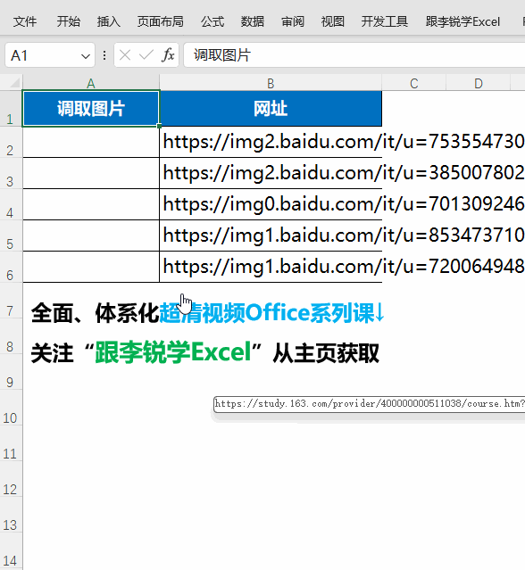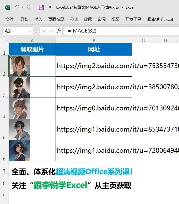 下面我采用动图演示+图文解析的讲解方式,5分钟教会你如何使用Excel 2024新函数IMAGE调取网络图片。