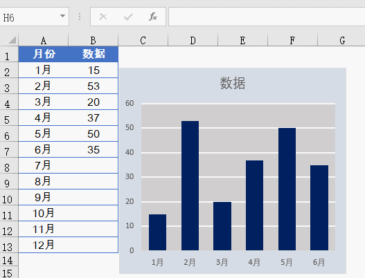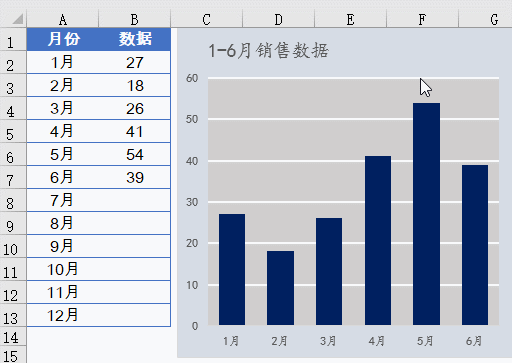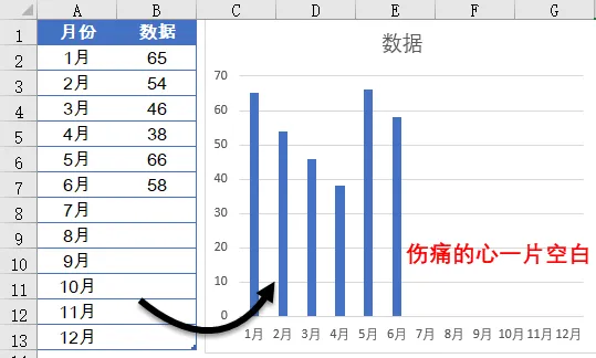 小伙伴们中午好啊,今天我们和大家分享一个动态图表的制作技巧。有同学可能说了,生成图表的时候,只选中有数据的范围,再来插入图表就好啊。但是,如果这样的话,每个月添加了数据之后,都要改图表的数据源,有没有一个懒办法,能根据实际数据的多少,自动调整图表呢?要实现这样的效果并不复杂。