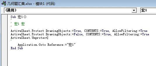 首先你的EXCEL菜单-[视图]那里有没有[宏],如果没有,我们先打开有保护密码的EXCEL文件,把宏设置显示出来。 一、点左上角-文件-选项-[自定义功能区],先把[开发工具]选上确定,如下图:ActiveSheet.Protect DrawingObjects:=True, CONTENTS:=True, AllowFiltering:=True