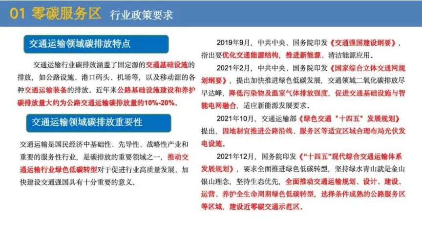 在绿色低碳发展的行业趋势下,高速公路零碳服务区建设成为交通领域转型的重要方向。其核心是通过政策引导、技术创新和科学管理,实现运营阶段温室气体净排放量等于或小于零的目标。