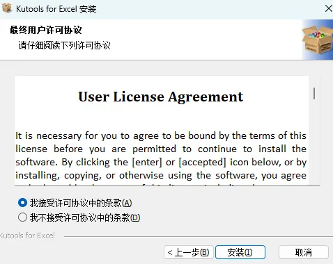 3.勾选“我接受...“,点击“安装”