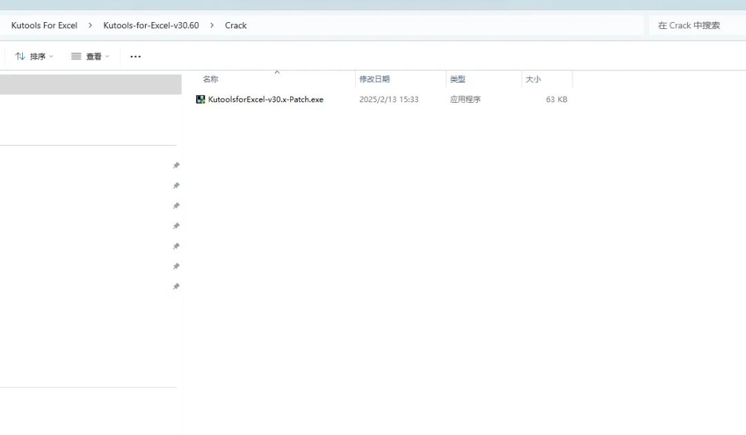 6.返回之前解压的“KutoolsforExcel v30.60”文件夹,双击打开“Crack”文件夹,选中“KutoolsforExcel-v30.x-Patch.exe“文件,鼠标右键点击“复制“