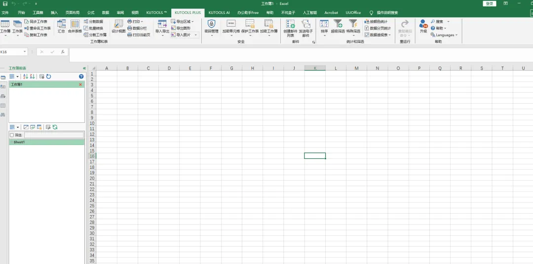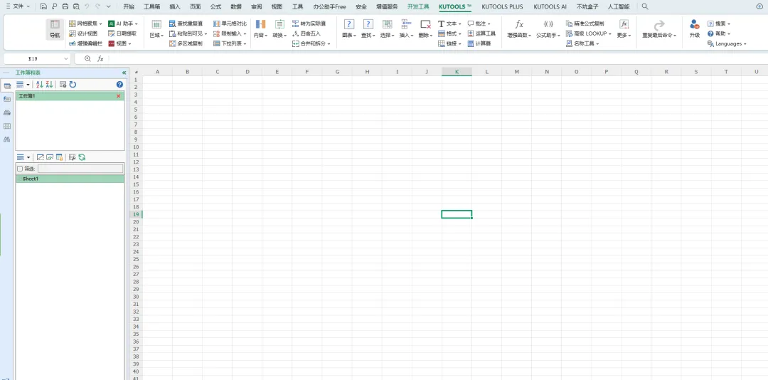 12.打开表格Excel软件或者WPS,点击“KUTOOLS”或者“KUTOOLS PLUS”项,可以下方还有多达几十项非常实用的功能,可以尽情使用了!安装完成。