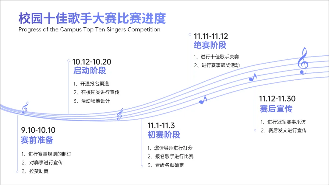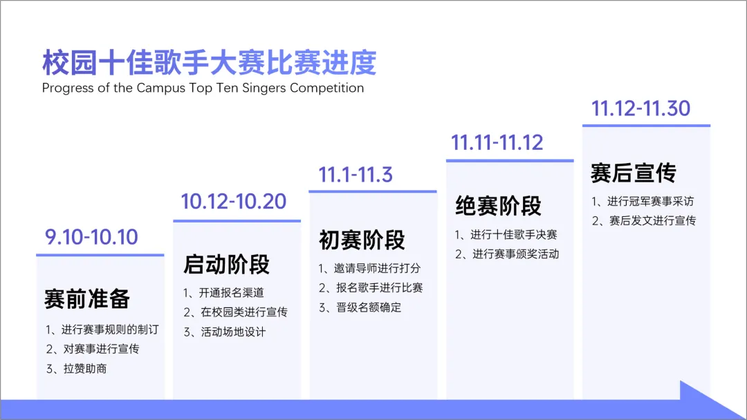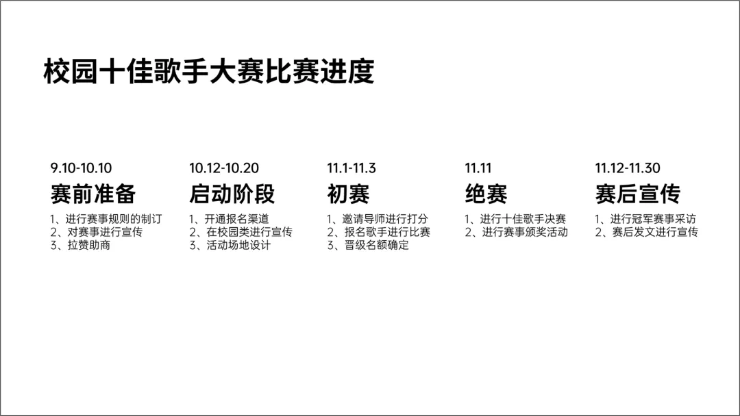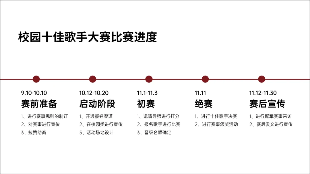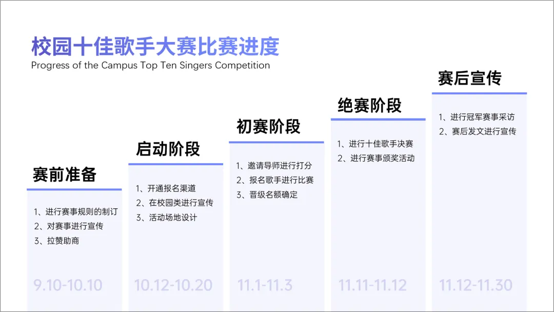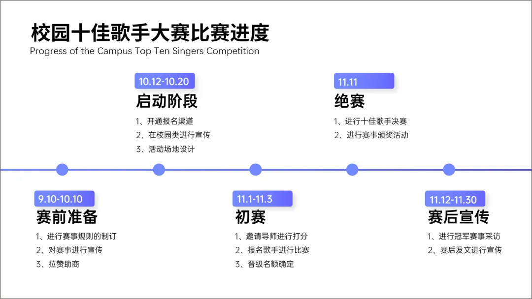 很多的进度图,都是以时间为脉络展开的,比如上面这个案例中的,十佳歌手比赛。