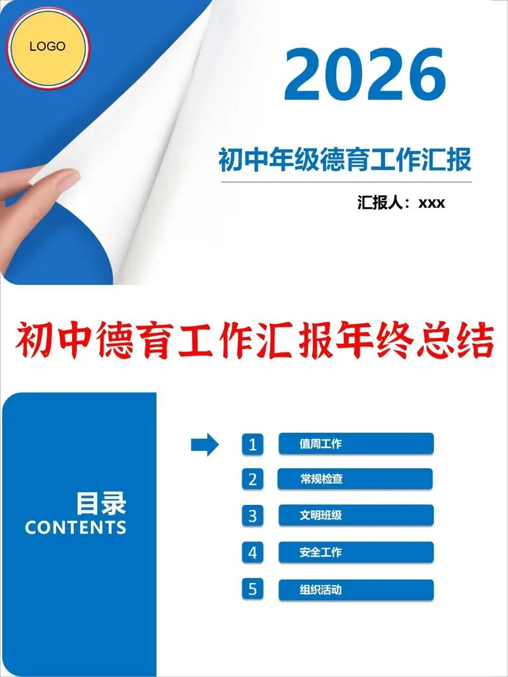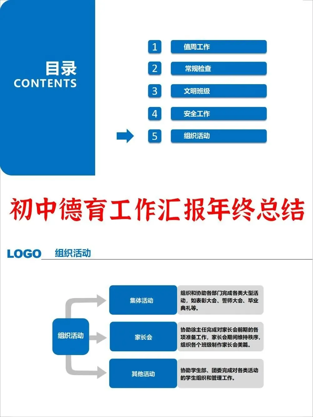 初中年级德育工作汇报述职报告ppt