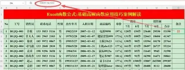 统计N4:N25单元格区域中数值的个数。