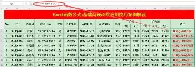 目的:将“工号”和“姓名”连接在一起。