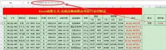 在目标单元格区域中输入公式:=VLOOKUP(Q4,C4:N25,12,0)。
