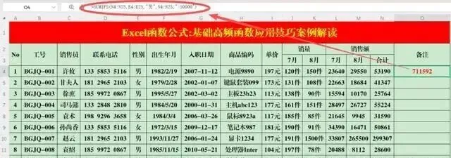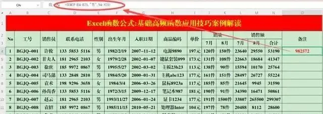 操作方法:在目标单元格中输入公式:=COUNTIFS(E4:E25,"男",N4:N25,">50000")。案例解读:当多个条件同时成立时,进行+1运算。
