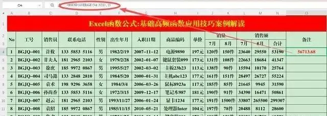 操作方法:在目标单元格中输入公式:=ROUND(AVERAGE(N4:N25),2)。案例解读:首先用Average函数计算平均销售额,然后用Round保留2位小数。
