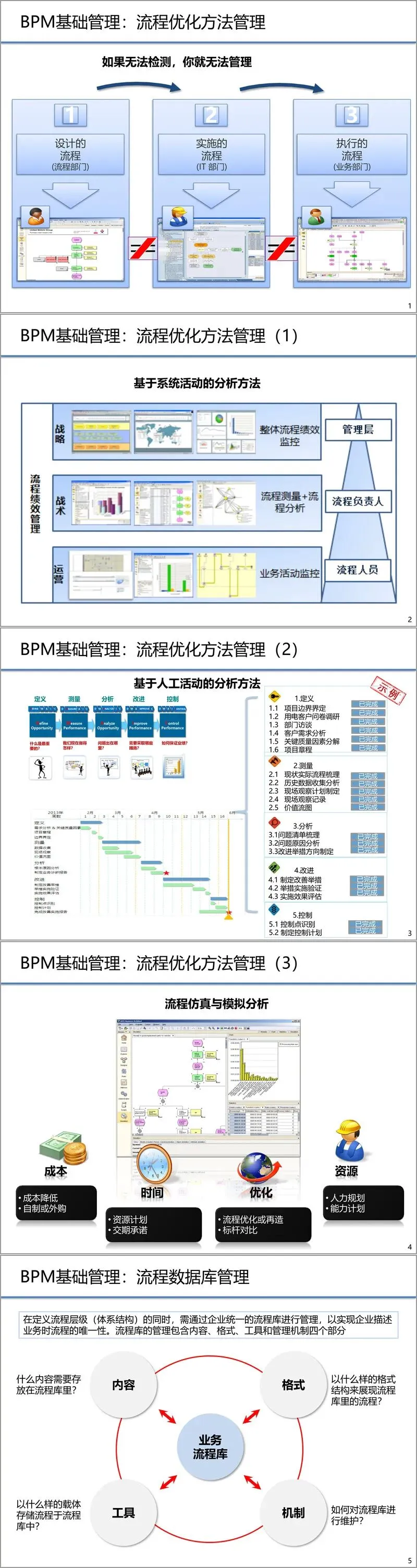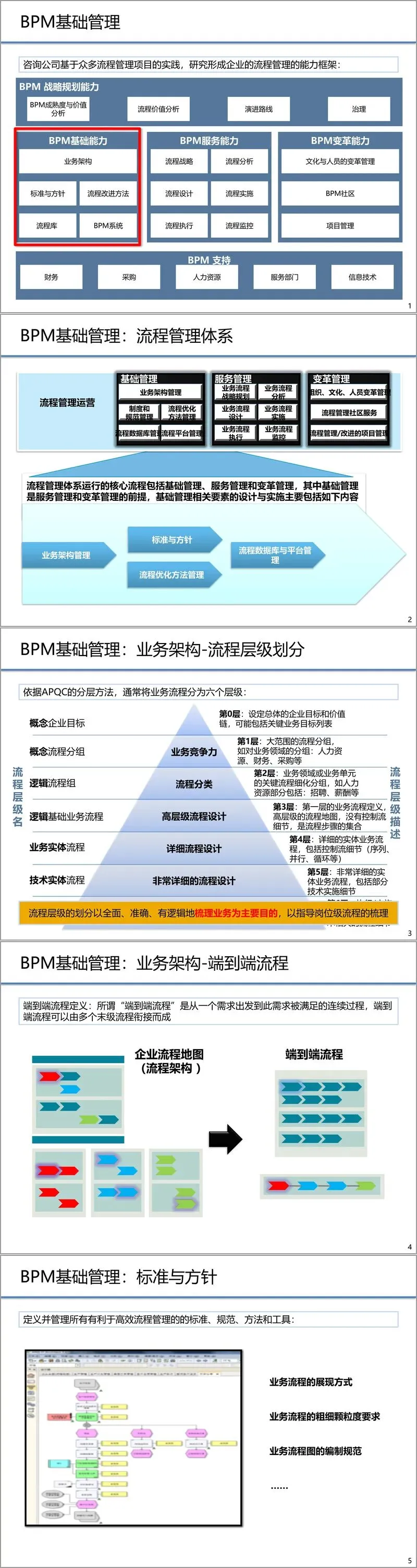 BPM基础管理能力是体系的基石。它涵盖了流程管理体系运行所需的核心要素,主要包括业务架构、标准与方针、流程优化方法以及流程库/平台管理。业务架构提供了流程的分层分级视图(通常借鉴APQC模型,从企业价值链到具体操作层级),并定义了端到端流程。标准与方针确保了流程描述的一致性和规范性。流程优化方法则提供了从分析、设计到实施、监控的系列工具(如基于系统或人工活动的分析、流程仿真等)。而统一的流程数据库和管理平台,则是承载和维系这一切的基础设施。