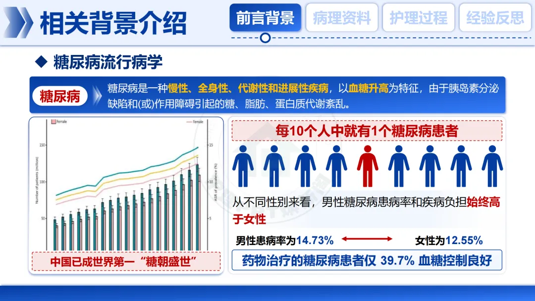 我的汇报将按前言背景、病例介绍、护理过程及经验反思的逻辑展开。
