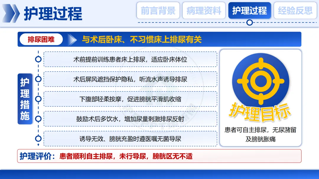 术后卧床导致排尿困难,我们通过诱导排尿等措施,帮助患者恢复了自主排尿能力。