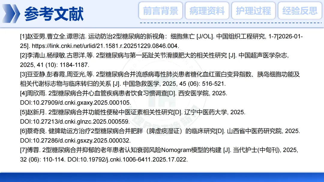 本次护理实践参考了关于糖尿病并发症、心血管风险及共病管理的最新研究文献。