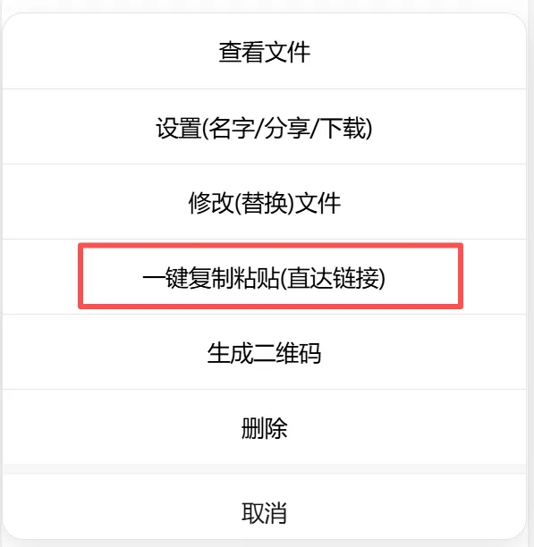 找到你刚才上传的文件,点一下,选择一键复制粘贴。