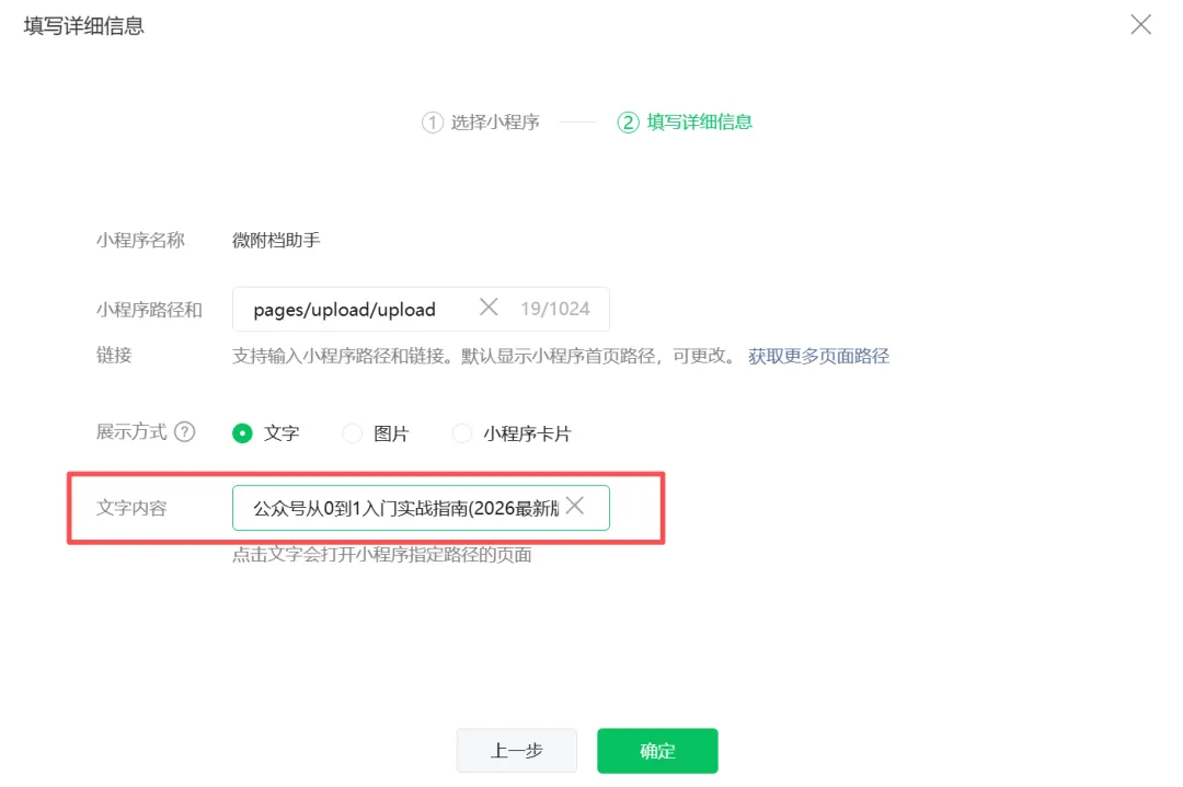 同样这边,我们也可以选择以图片或者小程序卡片的形式,这时候需要多上传一张封面图片,其余操作相同就不在演示。