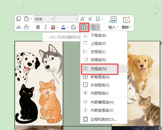 如果觉得差不多了,就可以将表格的线条隐藏起来了,鼠标左键选中表格——无框线: