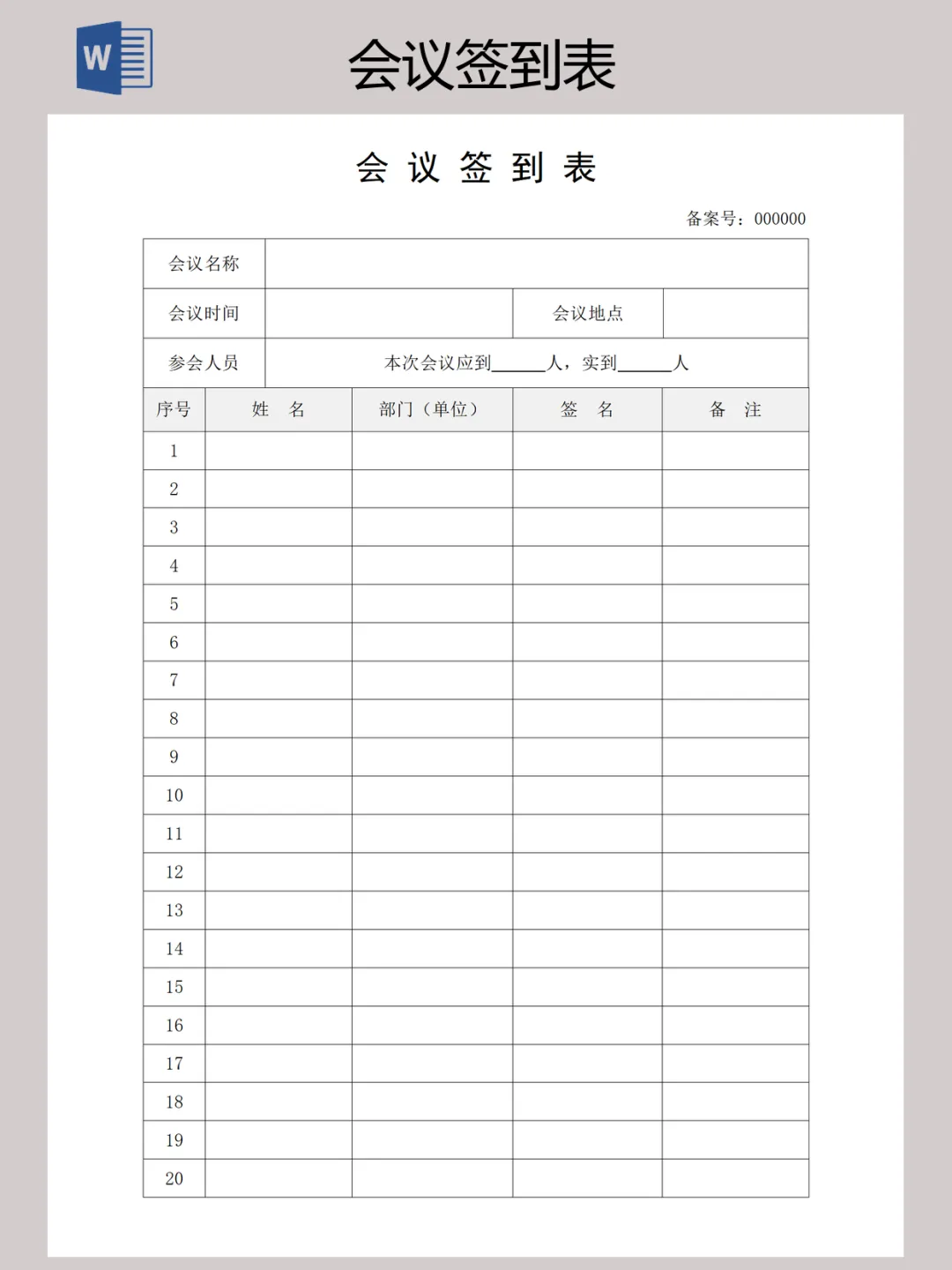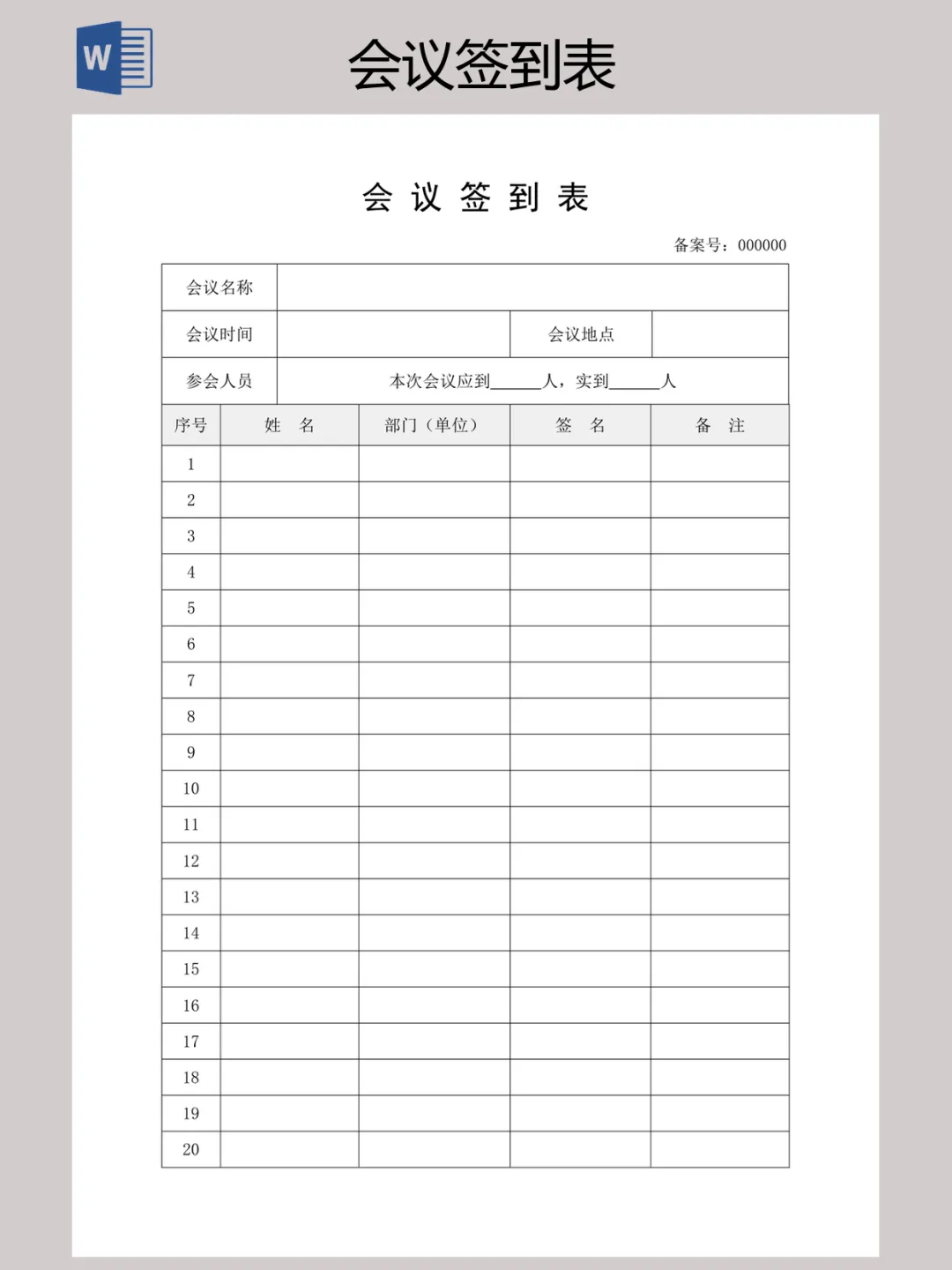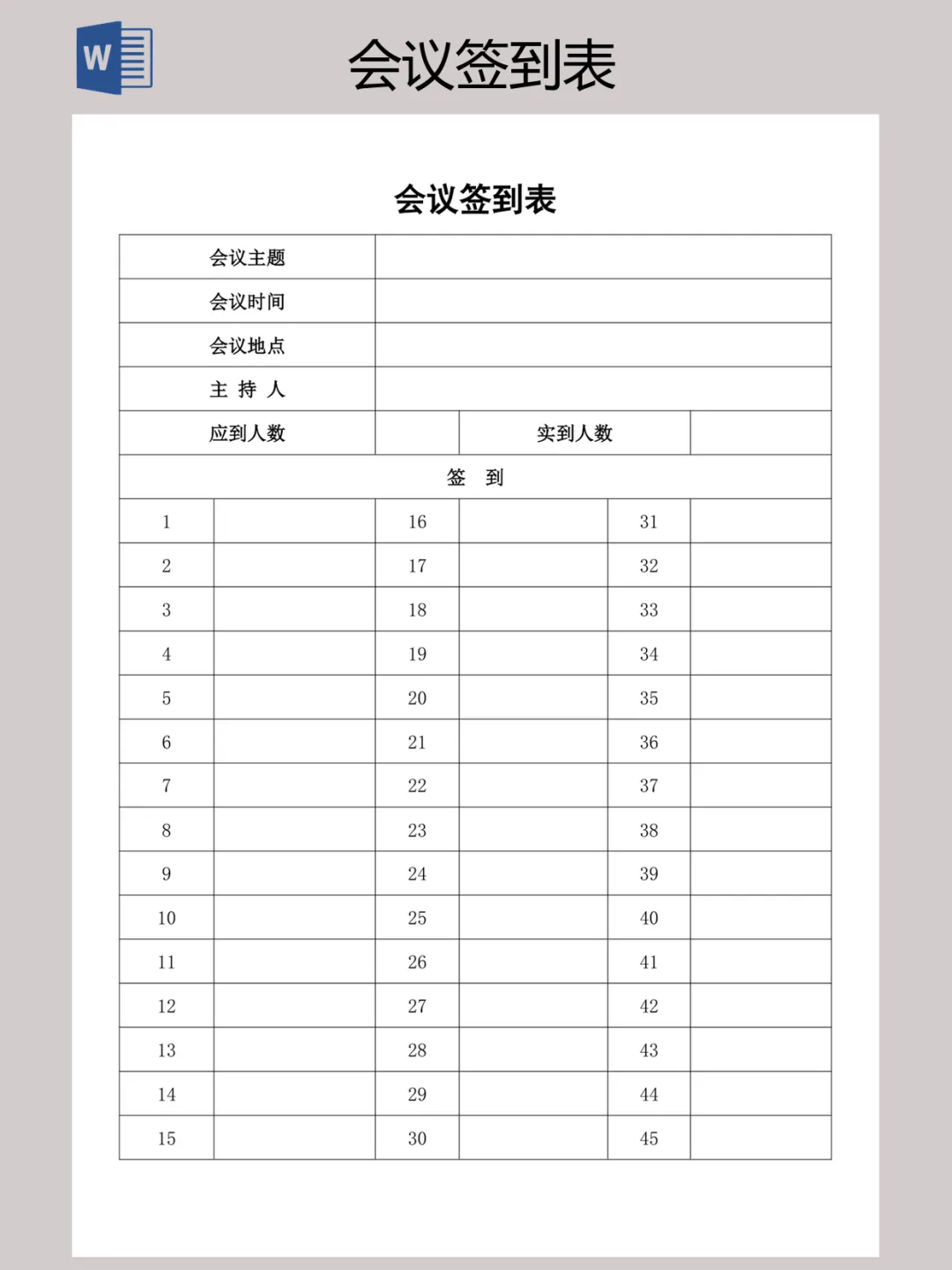 本文内容分享【会议签到表】